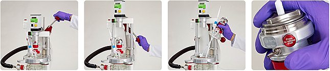 Позволяет заменять сосуды с рубашкой за несколько секунд, не требуется никакого инструмента.